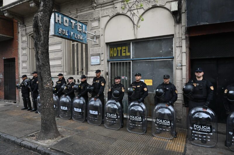 El desalojo del inmueble de la calle Brasil 1363/65 estuvo a cargo de la Policía de la Ciudad y el Ministerio Público Fiscal, tras denuncias por narcotráfico y prostitución. Lo ordenó la Unidad Fiscal Delitos, Contravenciones y Faltas Específicas a cargo de Jorge Ponce.