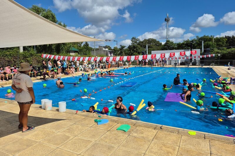 Durante la jornada, los participantes realizaron muestras acuáticas frente a padres y familiares, acompañados por profesores y profesoras. La actividad permite visibilizar el trabajo que se desarrolla durante la colonia, como también fortalecer el vínculo entre los equipos docentes y las familias.