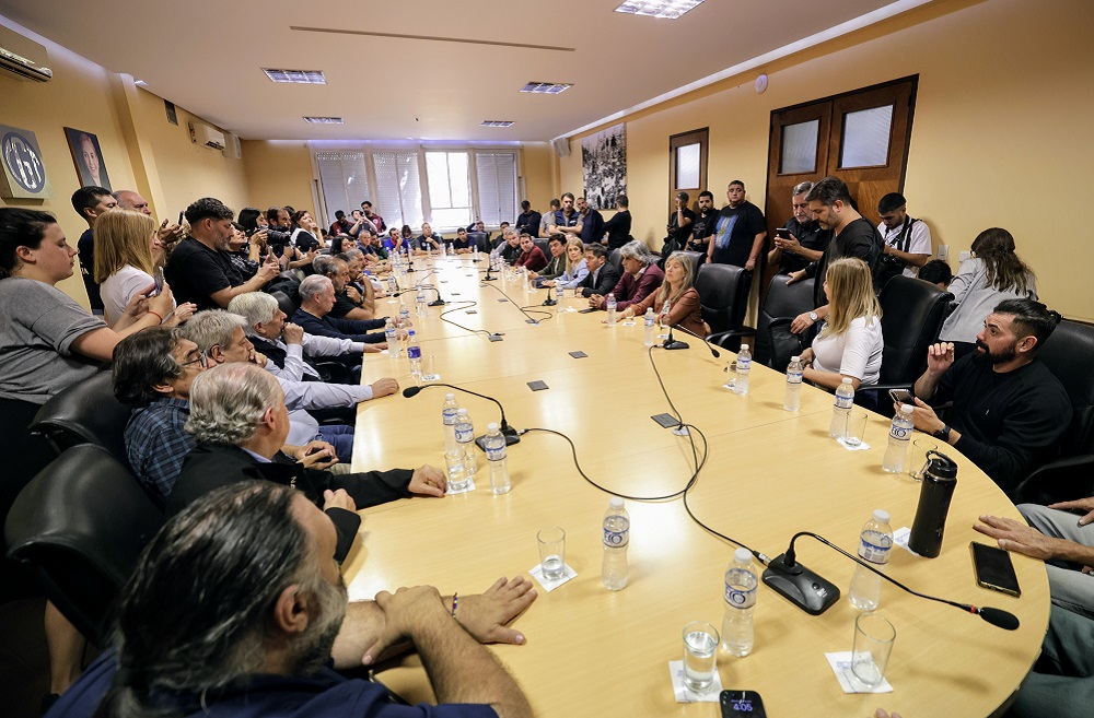 Participaron de la reunión los secretarios generales de la CGT, Héctor Daer, Carlos Acuña y Octavio Argüello; de la CTA de los Trabajadores, Hugo Yasky; de la CTA Autónoma, Hugo Godoy; y secretarios generales de distintos gremios de trabajadores y trabajadoras.