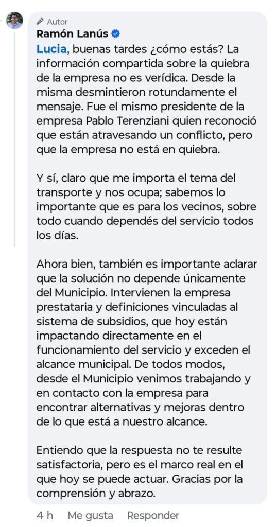 Esta situación no tomó por sorpresa a quienes siguen de cerca la crisis del transporte en la zona norte. Hace tan solo dos días, este medio publicó un informe advirtiendo sobre la inminente presentación de la quiebra de la empresa. Sin embargo, la respuesta del arco político y mediático tradicional fue el negacionismo.