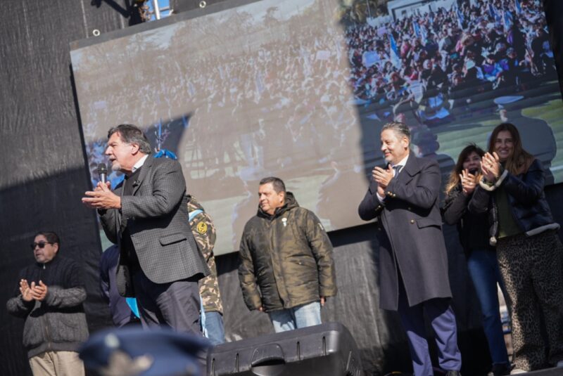 Menéndez y Sileoni en la promesa a la Bandera con 6 mil niños de Merlo.