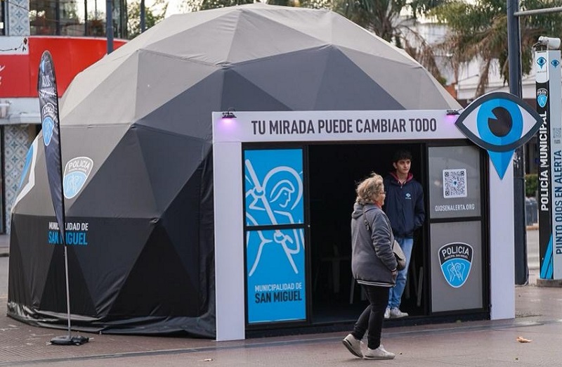 La Municipalidad de San Miguel ubicó en su plaza principal un nuevo domo de Ojos en Alerta, donde alrededor de 100 personas por día están realizando una capacitación exprés de dos minutos para formar parte del programa. El objetivo es reforzar y expandir aún más el uso de esta herramienta de seguridad y prevención ciudadana en el distrito.