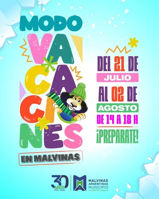 Se viene: ¡Modo Vacaciones en Malvinas!. El municipio de Malvinas Argentinas se prepara para activar “Modo Vacaciones en Malvinas”, una agenda completa de actividades gratuitas y de calidad, pensada para niños y niñas, para cada día del receso invernal.